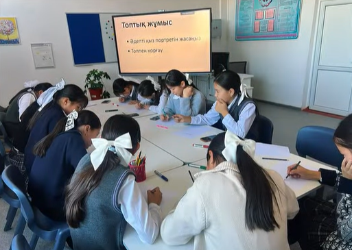 • «Әдепті қыздың портреті» топтық жұмысын орындап, талғам, тазалық, сөйлесу әдебі туралы ой қозғады;