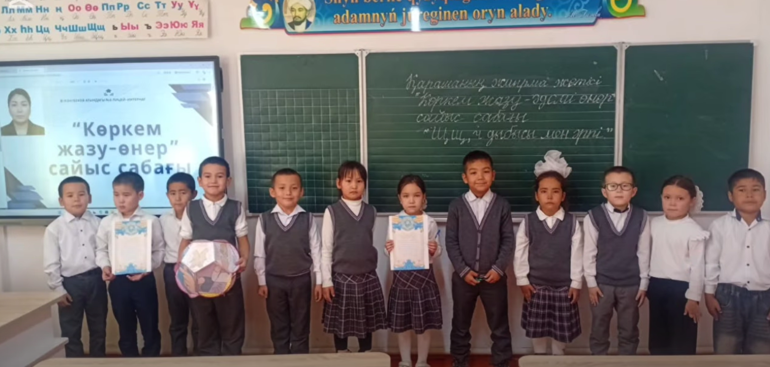 Мақсаты: Әріптерді дұрыс әдемі жазады. Жазу барысында әріптердің байланысын сақтайды.Жазу барысында қолдың дұрыс орналасуын қадағалайды.