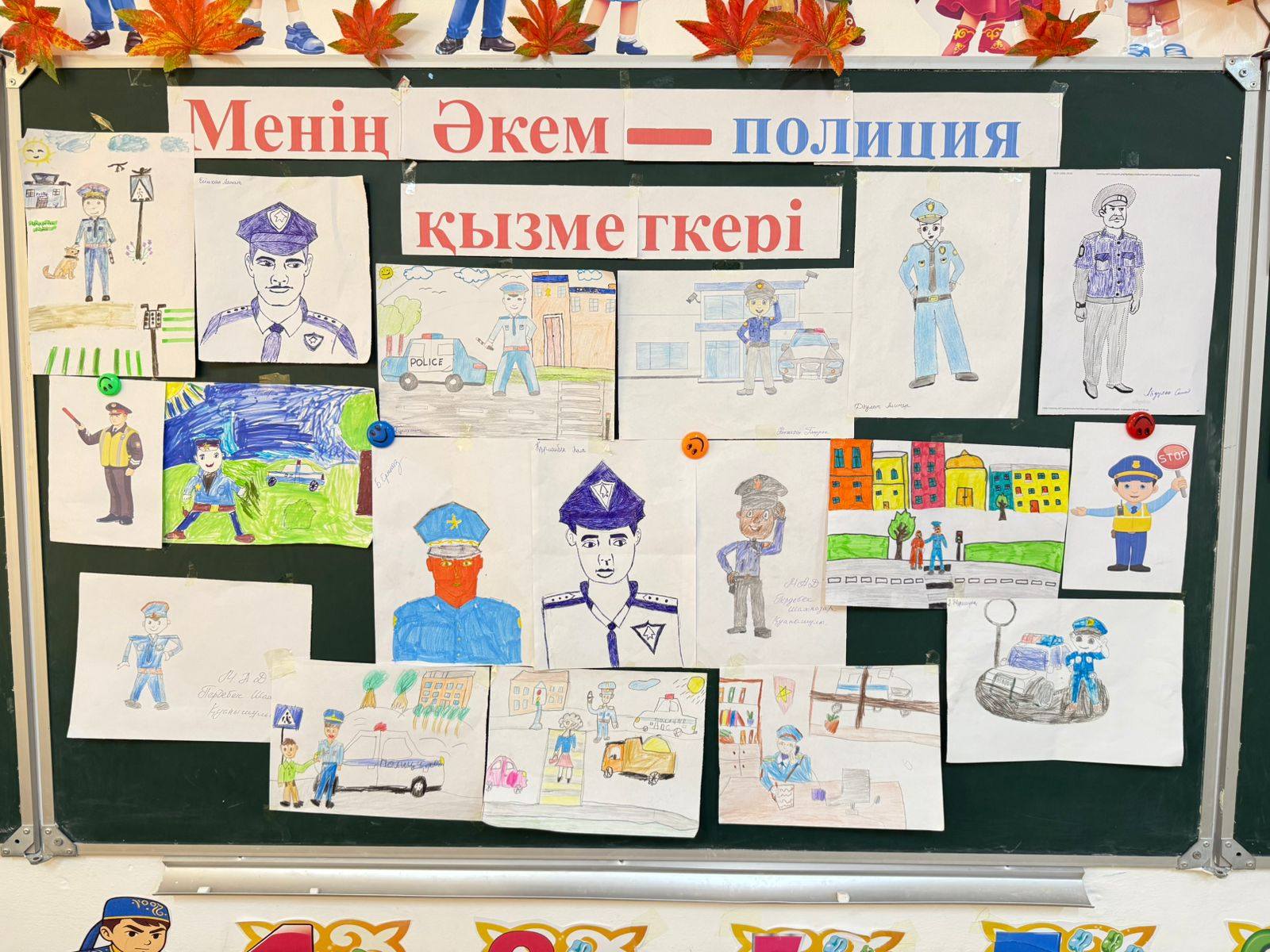 Мектебімізде 2026 жылғы 23 қаңтар күні «Менің әкем – полиция қызметкері» тақырыбында сурет көрмесі ұйымдастырылды.