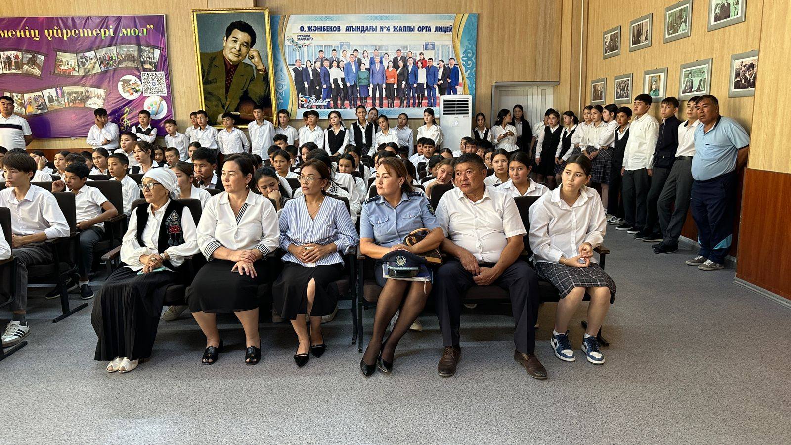 № 2-12-25-00811 хатына сәйкес 2025-2026 оқу жылындағы тиісті жұмыстарын зерделеу нәтижесінде Ө. Жәнібеков атындағы №4 лицей-интернат базасында тәрбие орынбасарлары, психологтар, әлеуеттік педагог және оқушылармен кездесу өтілді.