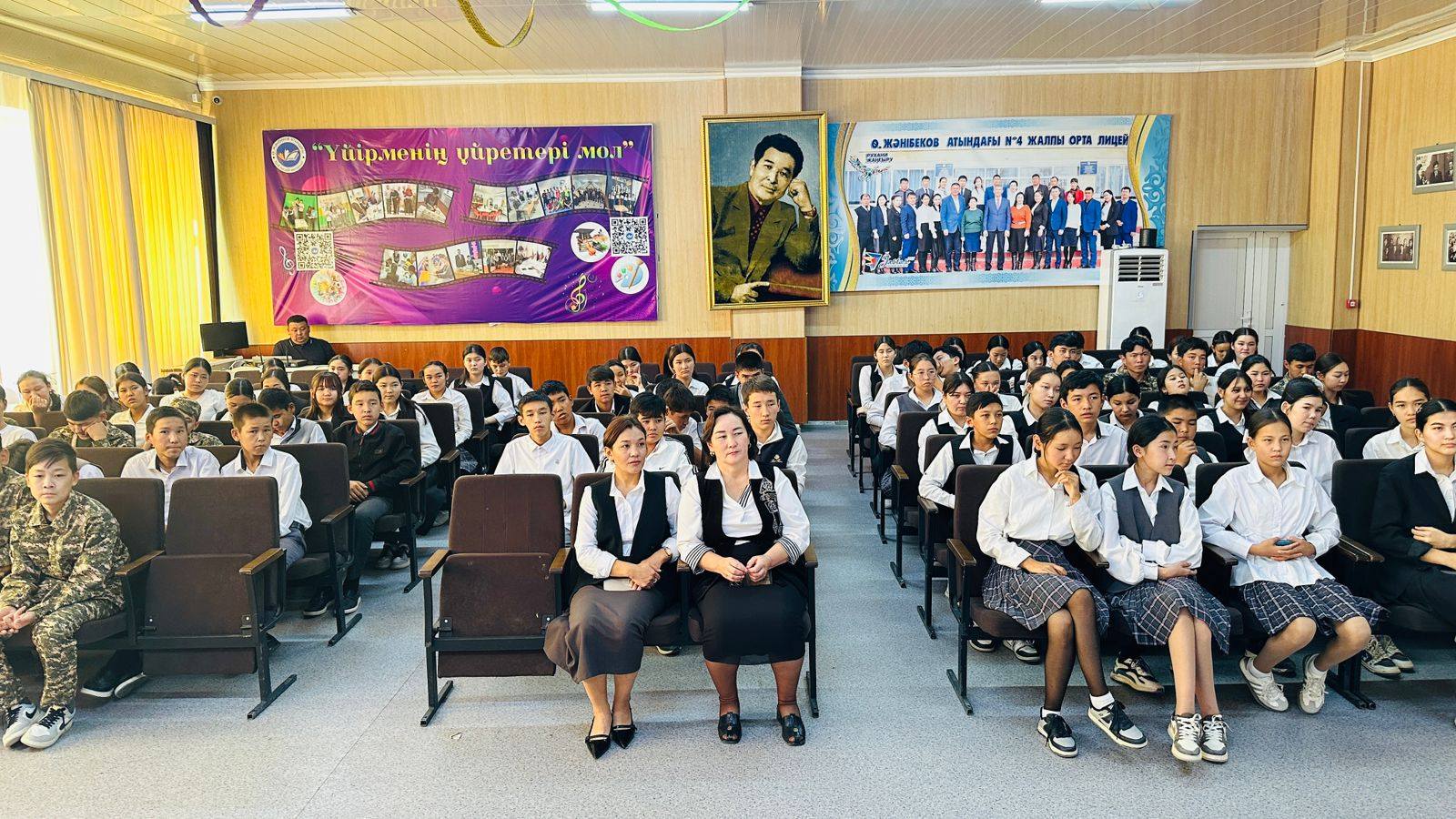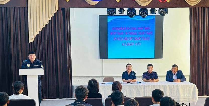 ЗАҢ ЖӘНЕ ТӘРТІП:КӘМЕЛЕТКЕ ТОЛМАҒАНДАР АРАСЫНДАҒЫ ҚҰҚЫҚ БҰЗУШЫЛЫҚТАРДЫҢ АЛДЫН АЛУЫ Түркістан облысы,Отырар ауданы, "Ө.Жәнібеков атындағы №4 лицей - интернат" КММ- де 26.09.2025 ж. күні мектепте 8-11 сынып оқушыларымен "Құқықбұзушылықтың, зорлық- зомбылықтың, нашақорлықтың алдын алу" тақырыбында жиын өткізілді.Жиынға Отырар АПБ ЖПҚ УПИ-ры полиция аға лейтенанты Зәуірбек Нұрдаулет"Құқық бұзушылық пен вандализм", Отырар АПБ КПБ-нің жедел уәкілі полиция аға лейтенанты Әметхан Еркебұлан "Зорлық -зомбылық, нашақорлық" мектеп инспекторы полиция капитаны Динара Ерденова "Келеңсіз оқиғаларда қандай әрекет жасау керек?" тақырыптарында балаларға бағыт - бағдар беріп, түсіндірме жұмыстары жүргізілді.