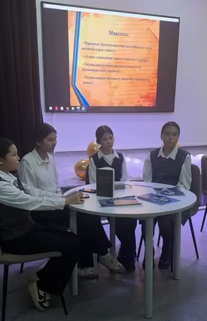 «Ө. Жәнібеков атындағы №4 лицей-интернаты» КММ-де 09.01 - 31.01.2026 ж. күндері «Шежіре» тарих, құқық негіздері пәні әдіс бірлестігінде «Тарих сабақтарындағы ЖИ: жаңа формат, жаңа көзқарас» тақырыбындағы айлық іс-шарасы барысында:14.01.2026 ж. Тарих пәнінің мұғалімі Бердиярова Майраның ұйымдастыруымен 8-сынып оқушыларына арналған «Міржақып Дулатов – ұлт рухын оятқан қайраткер» атты дөңгелек үстел өткізілді.