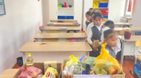 Игі іс соңы ауылымыздағы мұқтаж отбасыға азық-түлік табыстаумен аяқталды. Балалар жақсылық жасай отырып, үлкен алғыс алып қайтты.