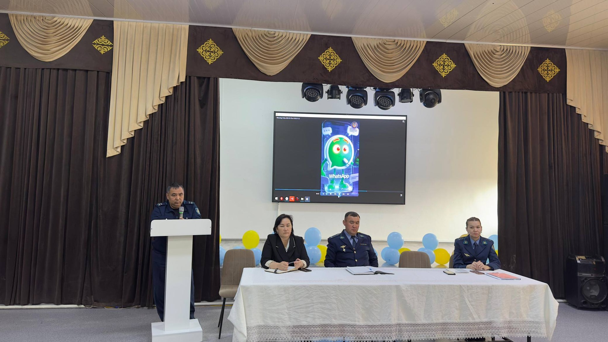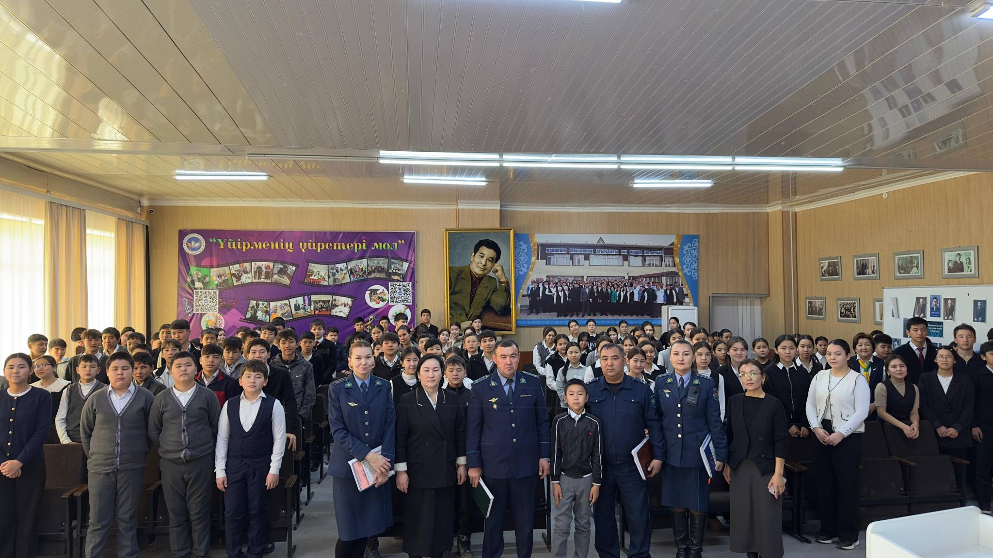 06.03.2026 ж күні "Ө.Жәнібеков атындағы №4 лицей - интернат" КММ-де аудандық полиция бөлімі қызметкерлері Отырар АПБ бастығының орынбасары полиция подполковнигі Төрехан Нұрдостың бастамасымен Отырар АПБ ҚҚБ ЮПТ аға инспекторы полиция подполковнигі Меңлібаев Талғат,Отырар АПБ ҚҚБ ЮПТ—ның инспекторы полиция капитаны Ерденова Динара Жақсыбайқызы, Отырар аудандық АПБ ҚҚБ ОТЗЗҚКТ аға инспекторы, полиция капитаны З. Надирова " Жасөспірімдер арасында қылмыс пен құқық бұзушылық, құмар ойынның,нашақорлықтың, өз- өзіне қол жұмсау, әлімжеттіліктің балалар жеке бас қауіпсіздігінің алдын алу бағытындағы түсіндірме жұмыстарын жүргізу барысында кездесу жиыны болып өтті. Жиында ауданымызда кәмелеттік жасқа толмағандар арасындағы қылмыстық оқиғаларды баяндай отырып бейне роликтер арқылы түсіндірме жұмысы жүргізілді. Түсіндірме жұмыстарынан соң оқушылармен сұхбаттар болды.