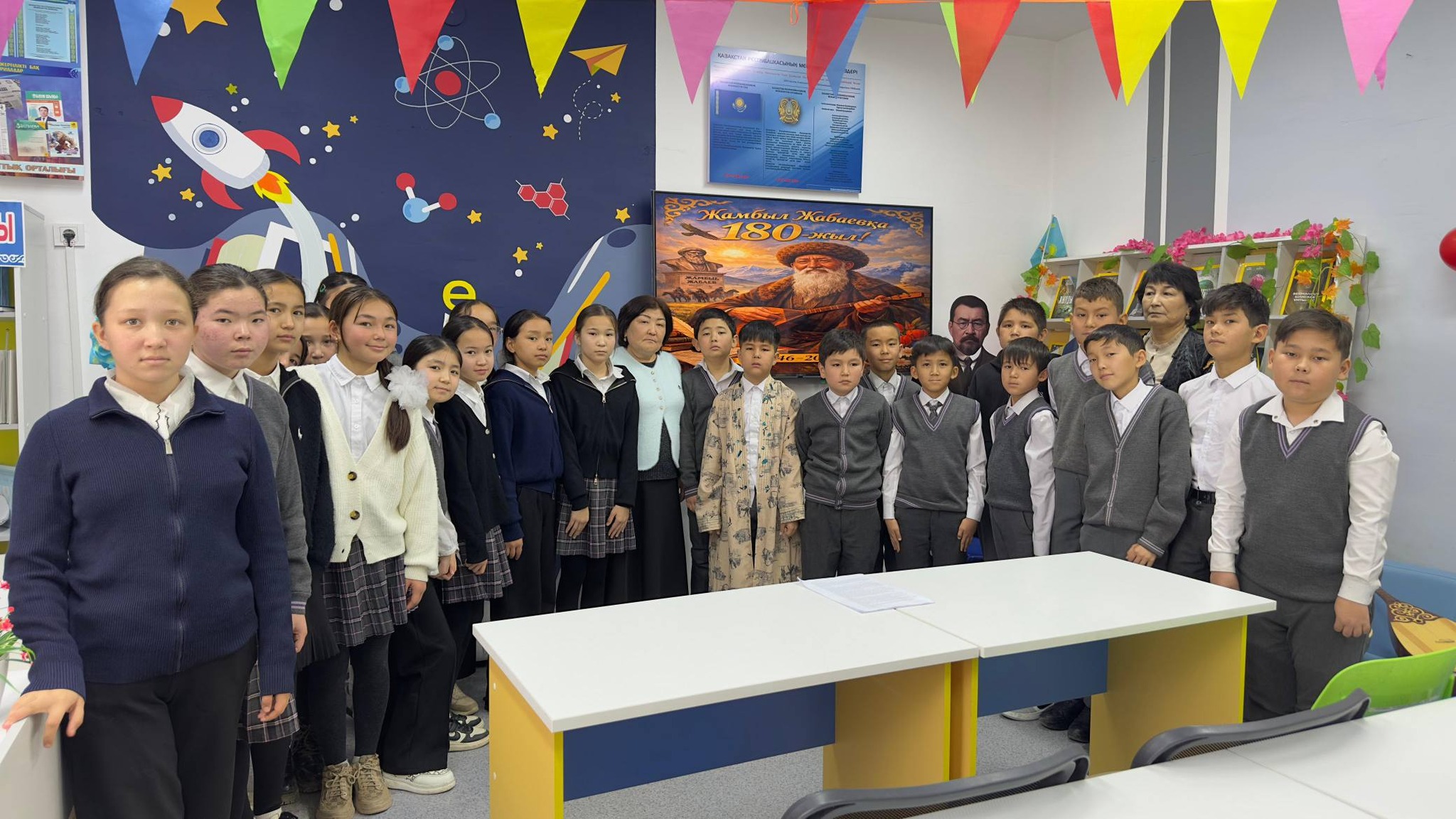 «Біртұтас тәрбие бағдарламасы» аясында, «Оқуға оқуға құштар мектеп» жобасы аясында Ө.Жәнібеков лицей-интернат кітапханасында «Оқитын сынып» 6-а сынып оқушыларыың қатысуымен «Жыр алыбы-Жамбыл» атты тақырыптық кеш өткізілді.